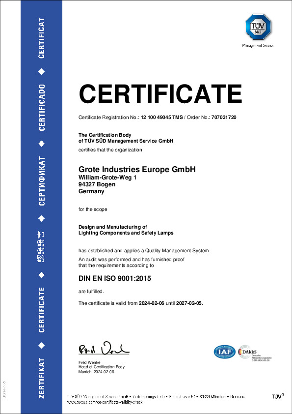 GROTE EUROPA ZERTIFIZIERUNGEN