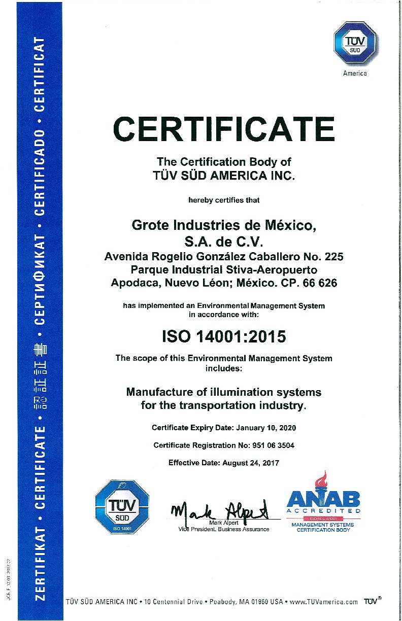 In unserem fortwährenden Bestreben, die von unseren Kunden geforderten Qualitäts- und Leistungsstandards sowie die etablierten globalen Vorschriften und Institutionen wie SAE, ASTM zu erfüllen oder zu übertreffen, wurde Grote 2003 der erste Hersteller in unserer Branche, der die ISO/TS16949-Zertifizierung erhielt. Wir haben nun unsere Geschäftsführungssysteme integriert und umgestellt, um 2018 die ISO/IATF 16949 1. Ausgabe Zertifizierung zu erhalten. Neben der Sicherheit ist Qualität unsere Priorität, und unser ultimatives Ziel ist es, bei jeder Lieferung null Fehler zu erreichen.